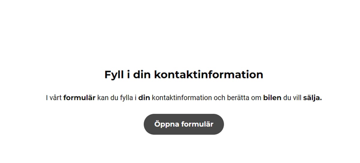 Här kan kunden fylla i ett kontaktformulär där hen beskriver vilken bil hen vill sälja.