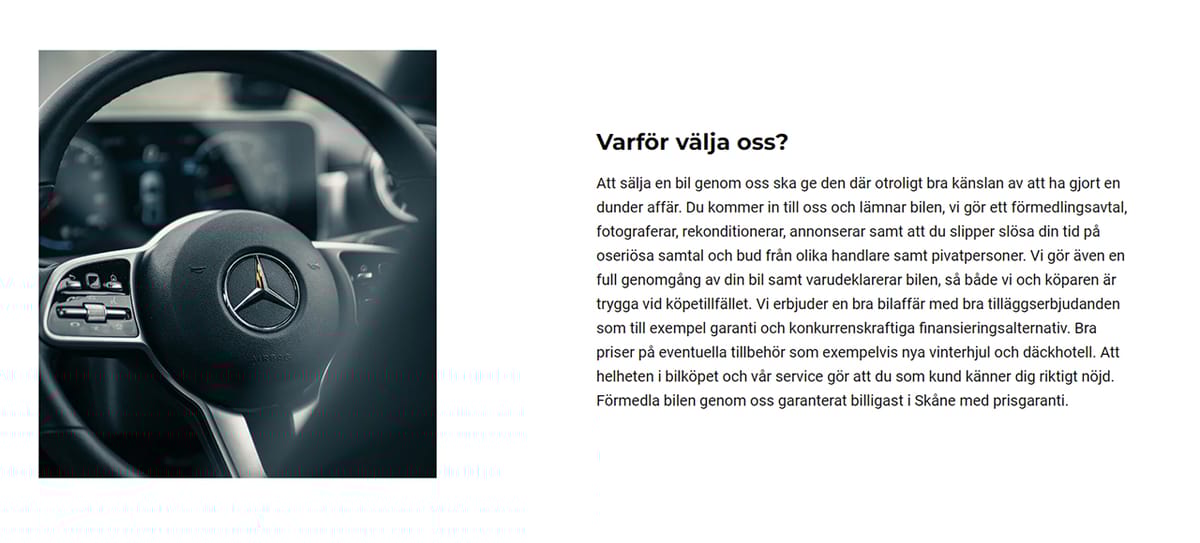 Här kan ni lyfta fram något relaterat till sälj bil. Varför ska man sälja sin bil till er? Lyft det som ni tycker är viktigast för kunden.
